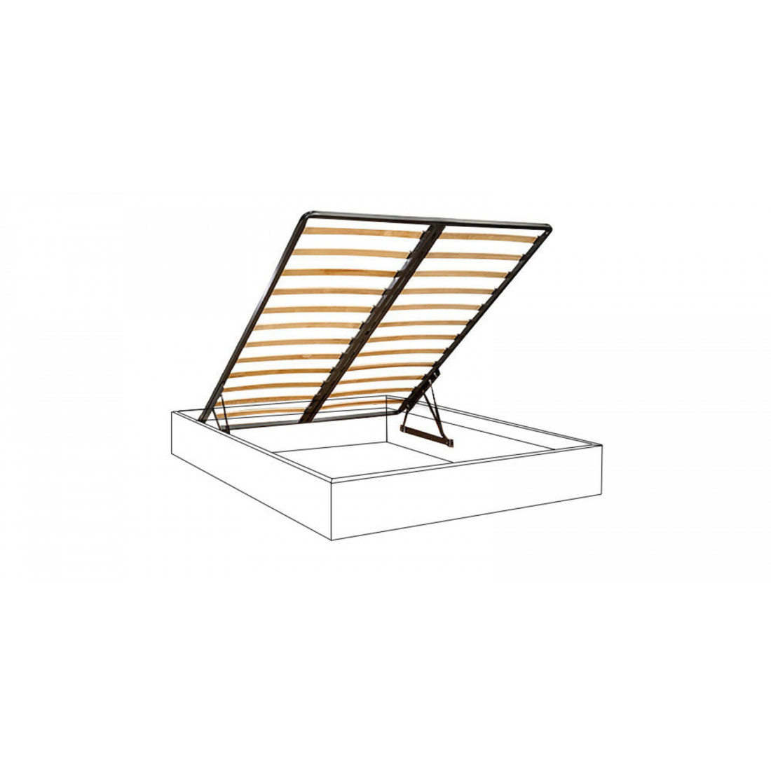 Наряду с подъемным механизмом производства Германии в кровать встроены ортопедическое основание и вместительный короб для хранения постельных принадлежностей.