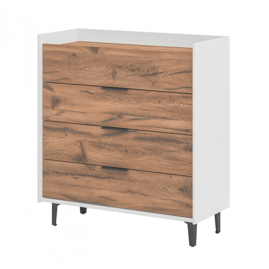 Элегантная комод Модена станет идеальным дополнением для вашей гостиной. Выберите из трех стильных вариантов цветов: Белый-Дуб Элисон, Лунный камень-жемчуг, Металл Бруклин-лунный жемчуг. Ножки из металла обеспечивают устойчивость.