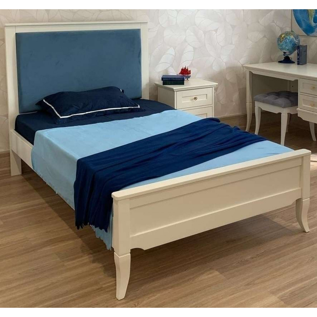 Кровать оснащена ортопедическим основанием для матраса — ламелями.