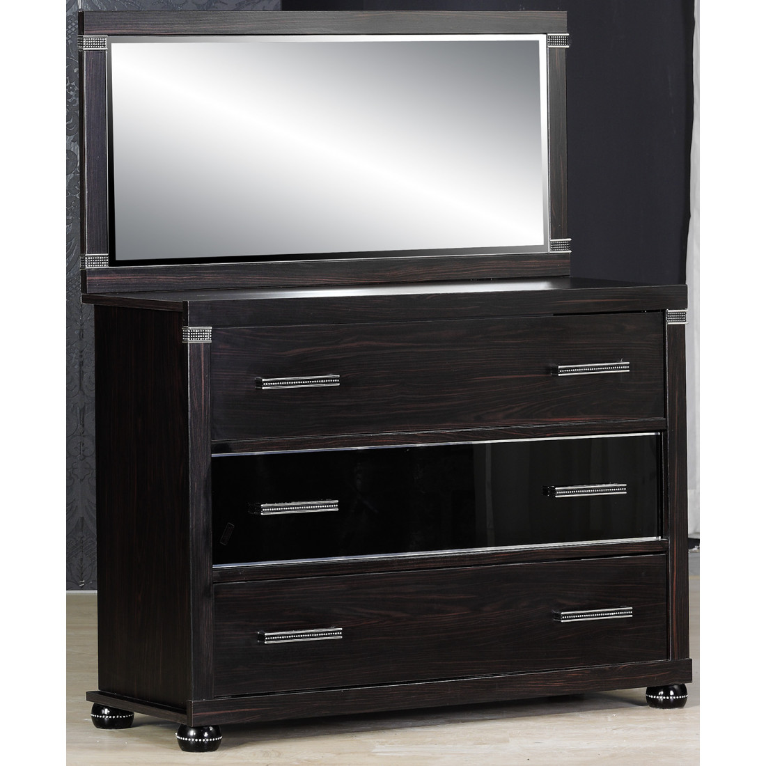 Прямоугольное настенное зеркало MIRA-24 (венге) для спальни серии Мира от Беллона станет завершающим декоративным и практичным элементом со вкусом обставленной комнаты. Размеры модели соответствуют ширине бельевого комода серии. В качестве украшения рамы использовались декоративные вставки с кристаллами . Купить настенное зеркало в цвете венге серии Мира теперь можно по сниженной цене.