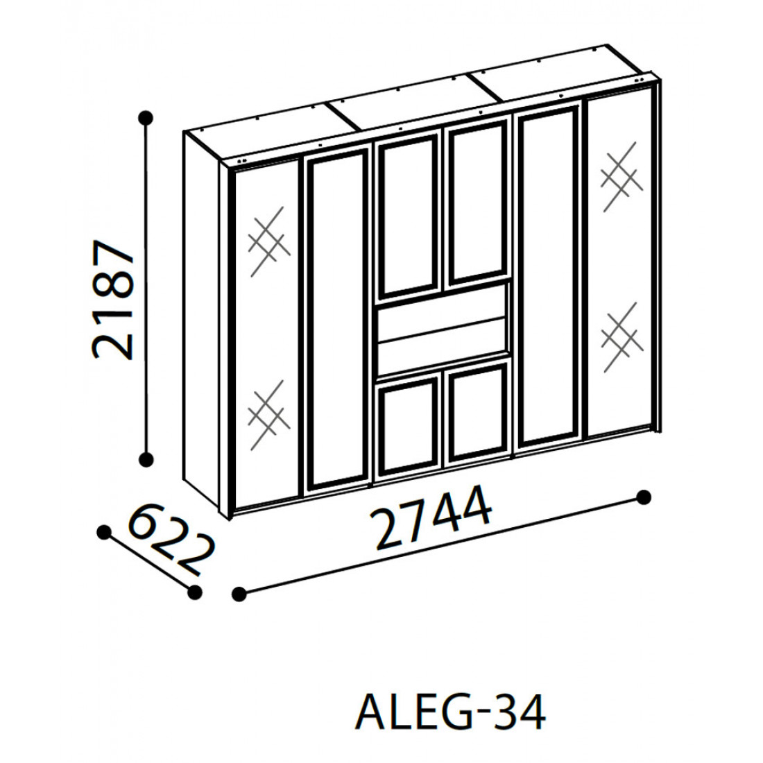Шестистворчатый распашной шкаф для одежды и белья с зеркалом в спальню ALEG-34серии Кастелло от Беллона – потрясающе великолепное и выгодное предложение для просторных спален и гардеробных от известного турецкого производителя. Больше нет нужды выстраивать линейные композиции и переживать, насколько гармонично, целостно и эффектно они будут смотреться в интерьере – роскошное дизайнерское решение уже готово.