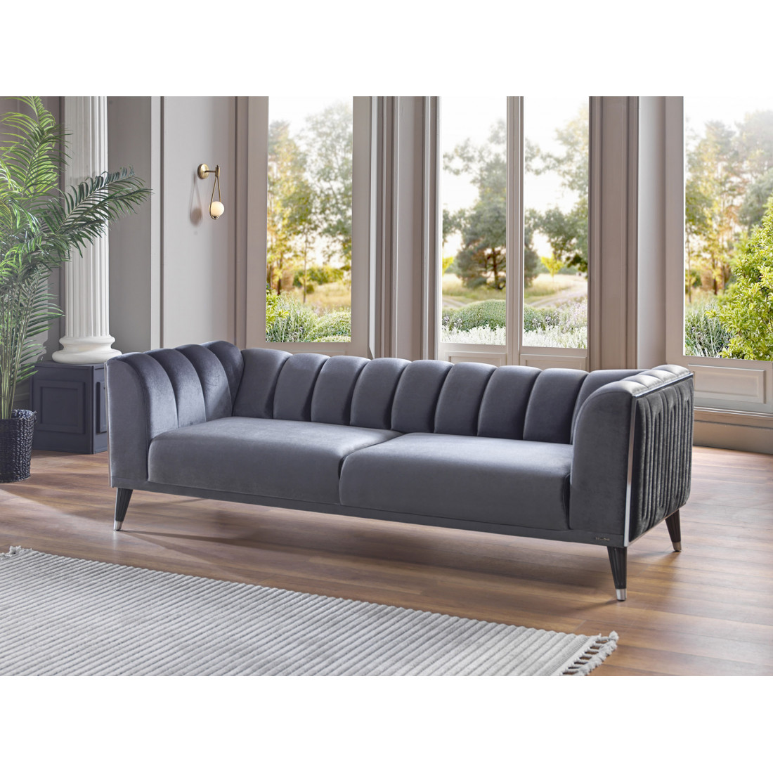 Трехместный диван-кровать Гравита (Gravita) GRAV-02 Беллона вместительный диван с невысокой спинкой. Габаритные размеры дивана 230х88х80см, позволяют трансформировать его в удобную кровать со спальным местом 106*182см. Диван на металлокаркасе, наполнение высококачественный турецкий ППУ. Вертикальная прострочка ткани боковин обрамлена хромированными вставками по периметру. Ножки дивана изготовлены из прочного ABS-пластика.