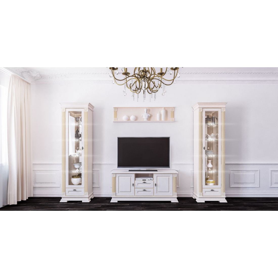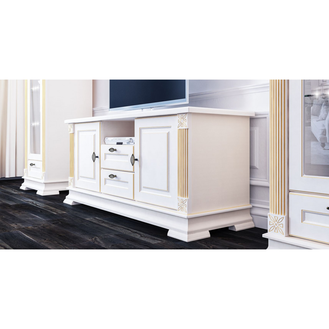 Тумба ТВ Афина будет прекрасным дополнением к гостиной в классическом интерьере.